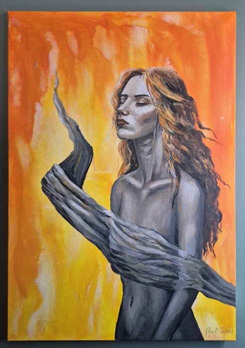 Obok portretów, Julia chętnie sięga po tematy natury – pejzaże, roślinne struktury i organiczne kształty, które stanowią dla niej oddech i kontrapunkt wobec intensywności ludzkich emocji. Jej malarstwo łączy subtelność z wyrazem, intuicję z techniczną precyzją.